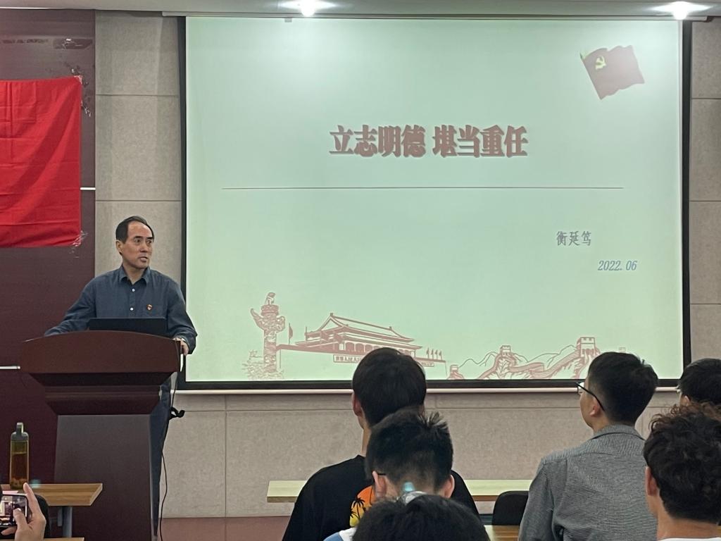 宣誓仪式结束后,衡延笃老师以“立志明德,堪当重任”为主题,讲授了一堂生动的党课,对全体新党员进行了一次党性教育。衡老师从建党100周年伟大奋斗历程中汲取智慧和力量,指出新时代青年肩负着建设社会主义现代化的重任,要进一步将思想、行动统一到习近平总书记重要讲话精神和党中央决策部署上来。全体与会同志纷纷表示,奋斗是青春最亮丽的底色,行动是青年最有效的磨砺;会恪守在党旗下的誓言,更加严格要求自己,让青春在磨砺中出彩,在建设新时代的不懈奋斗中升华,努力使自己成为一名优秀的共产党员。