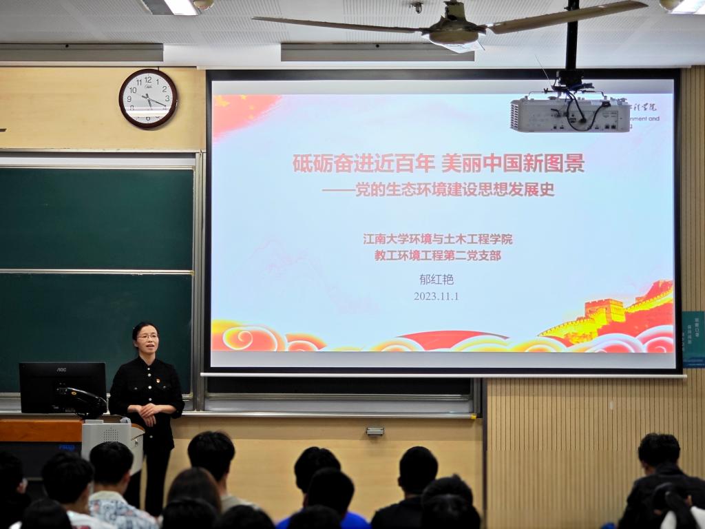 周期老师首先就本期培训班第二讲教学安排和要求做了简要介绍。随后郁红艳老师以“砥砺奋进近百年,美丽中国新图景”为题,详细阐述了党的生态环境建设思想发展史,从“被动式”环境保护切入,叙述了党对于生态环境的重视与整治,并且指出在二十大报告中,我国的目标是在本世纪中叶把我国建成富强民主文明和谐美丽的社会主义现代化强国。郁红艳老师强调,希望同学们严格要求自己,重视环境保护,在工作和学习中不断向党组织靠拢,提高自身修养,以身作则,以实际行动保护生态环境,无愧于组织对同学们的信任。