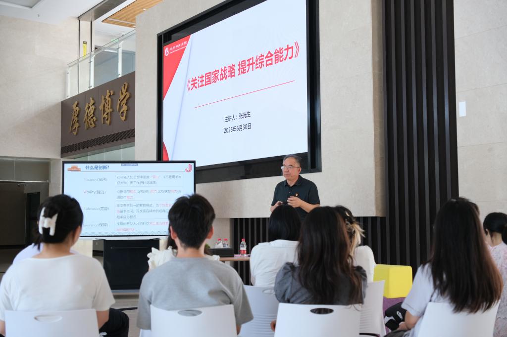 为深入贯彻“青春为中国式现代化挺膺担当”的实践号召,引导青年学生将个人成长融入国家战略,6月30日,2138CC太阳集团关工委常务副主任、宜兴食品与生物技术研究院院长张光生作《关注国家战略,提升综合能力》主题讲座,并同步举行2025年暑期社会实践出征仪式。学院师生代表、暑期实践团成员共同参与活动,为即将奔赴各地的实践团队注入思想动力与行动指引。