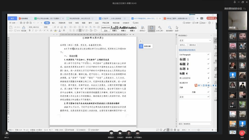 为了加强党员政治理论学习,学习贯彻习近平总书记的重要讲话精神,6月5日上午,本科生工管环工专业党支部召开组织生活会暨毕业生党员教育。本次会议以线上形式开展,由支部书记蒋达锋老师主持,支部全体党员参加。
