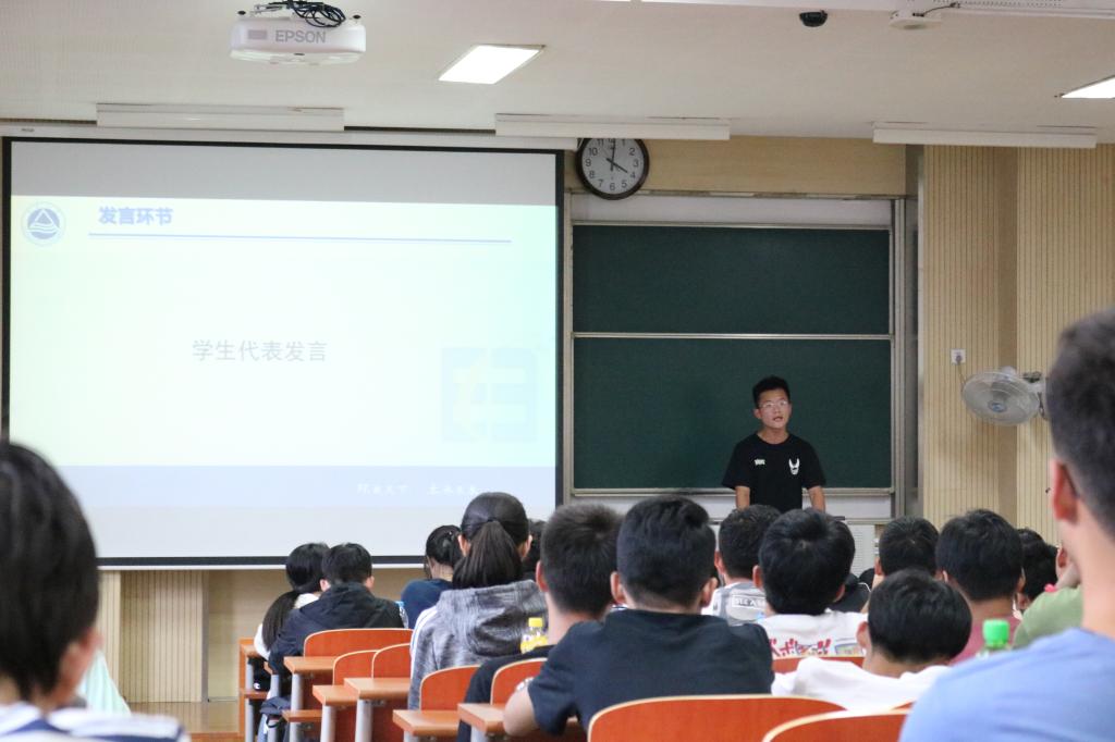 大会在嘹亮的国歌中拉开帷幕。周佳赟老师介绍了军训相关事宜,周老师的讲话让同学们对军训的过程有了更进一步的了解。周佳赟要求同学们积极调整心态,以饱满的精神状态迎接军训生活。周老师希望同学们在军训期间要严守纪律,遵守学校规定的作息时间,在新的环境中注重提高自己的身体素质,实践动手能力,发扬吃苦耐劳精神。人武部韦红武做动员讲话。他指出,军训是一个考验同学们意志力的过程,更是提升个人组织纪律性的过程,为此,同学们需要真正明白军训的意义,发扬军队艰苦奋斗的优良传统,以饱满的热情投入到军训中去,圆满完成军训任务。环工2002班白占杰同学代表2020级全体新生发言,承诺在军训期间同学们将用实际行动展现当代大学生的青春风采,遇到困难不退缩,迎难而上,秉承“追求卓越、自强不息”的精神,在军训期间以一名军人的身份严格要求自己,在军训过程中展示同学们的飒爽英姿。会议在热烈的掌声中落下帷幕。