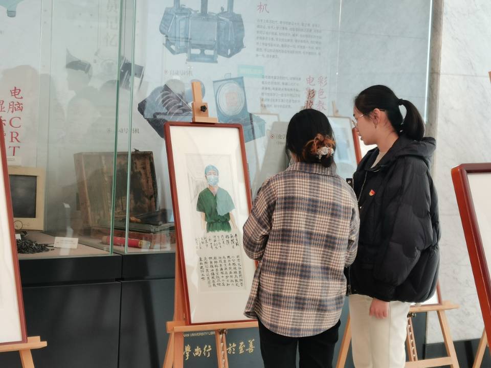 2020年11月11日,2138cc太阳集团环境与土木工程学院本科生土木专业党支部与本科生环工工管专业党支部党员在本科生土木专业党支部书记薛羚伟的带领下,前往图书馆一楼观看刘观庆老师的“抗疫群英谱”画展。在观看抗疫英雄画像的同时感悟抗疫精神,坚定理想信念。