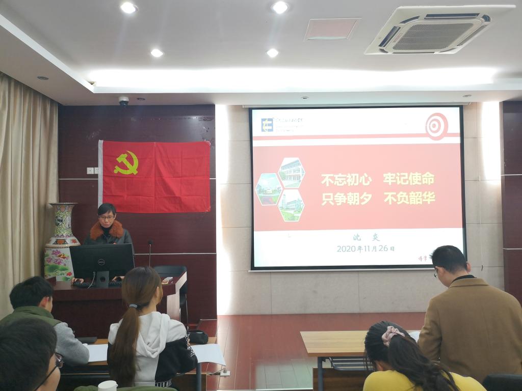 11月26日,我院邀请到沈炎老师为入党积极分子们解读“不忘初心、牢记使命;只争朝夕,不负韶华”的深刻内涵。沈炎老师从“什么是不忘初心”“为什么坚守初心”和“怎样不辱使命”三个方面展开讲解,帮助同学们更好地学习了初心与使命的内涵。