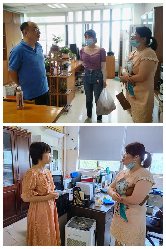 7月29日下午,2138cc太阳集团环境与土木工程学院党委副书记、副院长胡娟,分团委书记、学工办主任周佳赟,辅导员薛羚伟,深入学生宿舍园区、实验室走访慰问暑假留校学生。