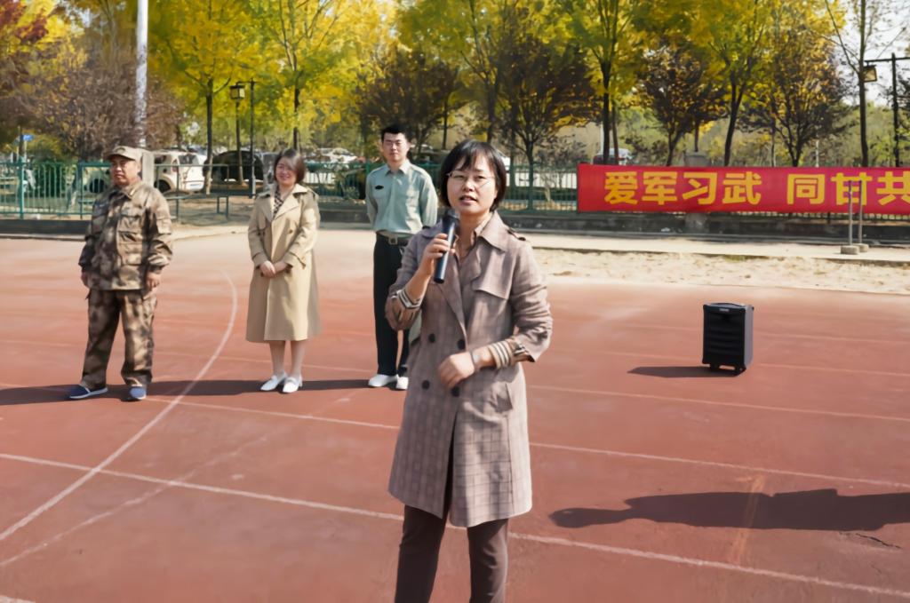 在观看了同学们的分列式表演和军歌表演之后,院党委书记李艳对学生们良好的精神面貌给予高度评价,期望同学们通过训练,增强国防观念,提高身体素质,意识到军事训练的重要与光荣,其后李艳感谢了教官们的细心指导,希望同学们继续努力,在最终的汇报表演中取得优异成绩。人武部韦红武、刘璇刚老师肯定了同学们克服困难,发扬吃苦耐劳的精神,希望新生在之后的训练中能进一步磨炼坚强意志。
