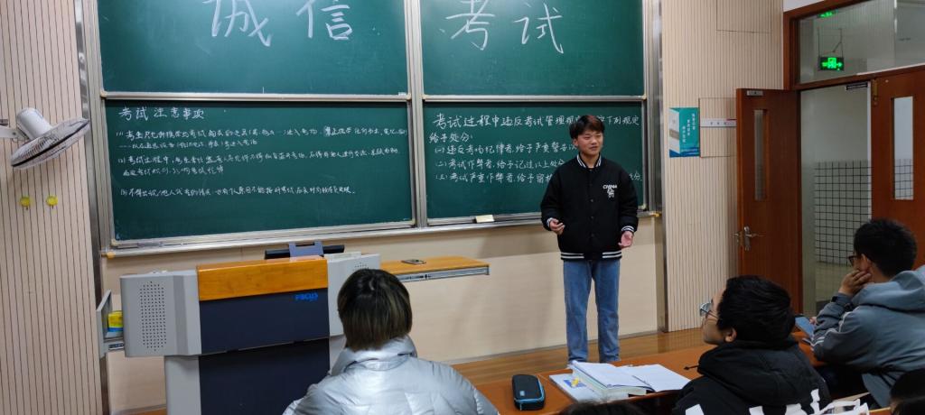 行为世范,力行诚信考试重要实践。各班积极开展主题为“诚信应考 踏实做人”诚信考试教育班会,会后带领班级学生签订了《诚信考试承诺书》,并倡议同学们树立诚信的良好品质,在生活中坚持“诚信为本”,养成讲诚信的好习惯。学院进一步加强学业辅导与帮扶,一对一关注帮扶学业困难学生,加强考前朋辈辅导和帮助。