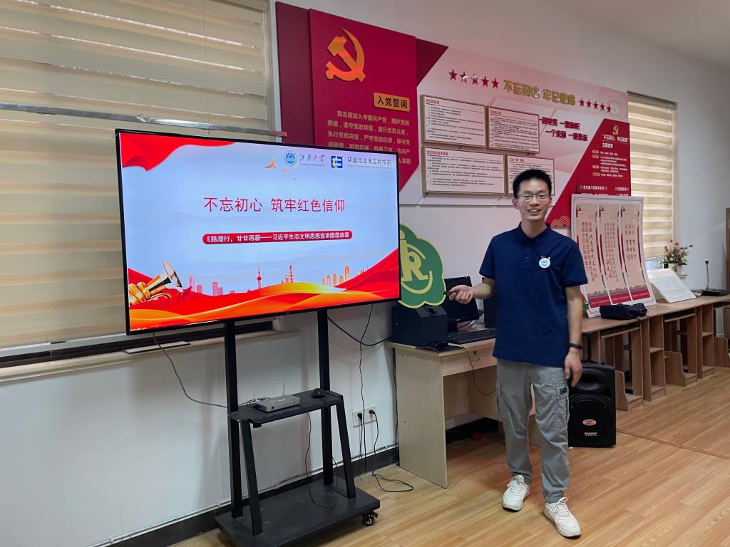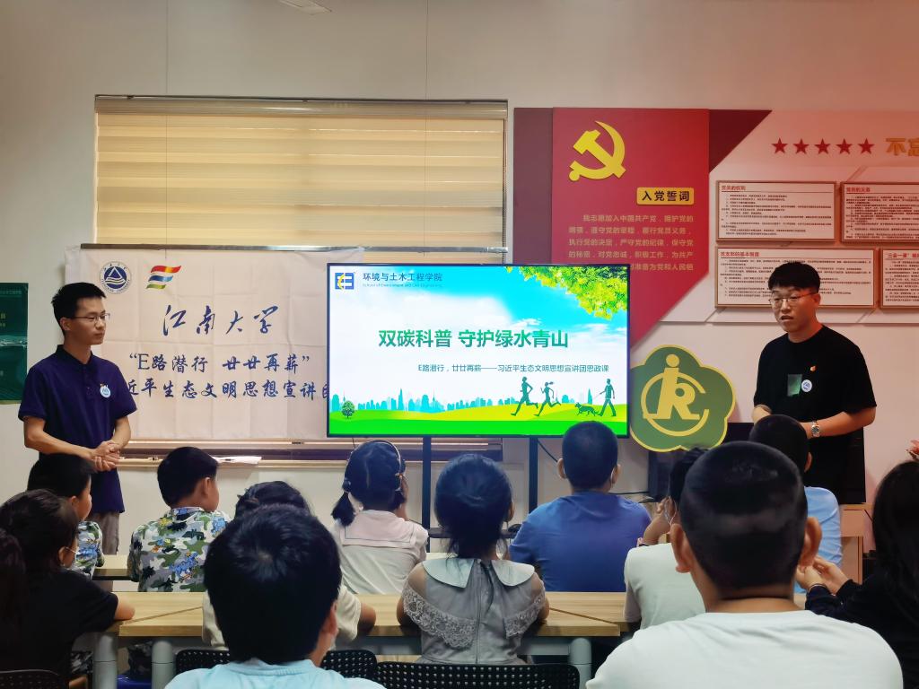 生态兴则文明兴,生态衰则文明衰。习近平总书记在全国生态环境保护大会上发表的重要讲话指出:生态文明建设是关系中华民族永续发展的根本大计。为响应习近平总书记保护生态文明的号召,2138cc太阳集团环境与土木工程学院组建了“E路潜行,廿廿再薪”研究生党员宣讲团,于2022年8月中下旬分别探访了王选事迹陈列馆、顾毓琇纪念馆等红色革命基地,并在无锡市崇安寺街道东河花园社区、广益街道毛湾一苑社区、扬名街道芦一社区、广益街道毛岸新苑社区、北大街街道金河湾社区等地开展了环保科普宣讲。宣讲团以习近平生态文明思想为主题,结合海报、视频、有奖竞答等方式科普了双碳战略、垃圾分类等环保知识,寓教于乐,让大家积极参与到活动中,让环保知识深入人心。