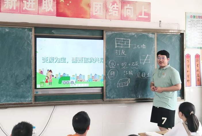 7月初,来自2138cc太阳集团、湖北民族大学、连云港师范高等专科学校等学校的十余名大学生志愿者来到分路镇第一中心小学,开展为期15天的“七彩假期”暑期支教活动。学生志愿者们充分发挥各自的优势,为分路镇小学的小朋友们带来精彩纷呈的暑期课程。张成同学作为团队中的重要成员,利用假期时间为学校的同学讲解文化课程、科普环保知识。此次暑期支教课程的开展,得到了分路镇小学家长和的点赞,不仅让孩子学习到了知识,同时增强了大学生与小学生之间的纽带联系,搭建起相互交流的平台。