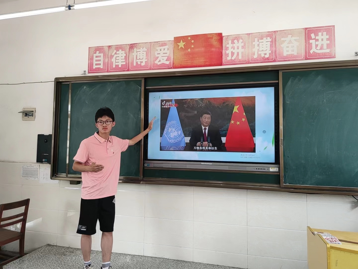 张成同学为小朋友介绍习近平总书记关于生态环境保护的重要讲话
