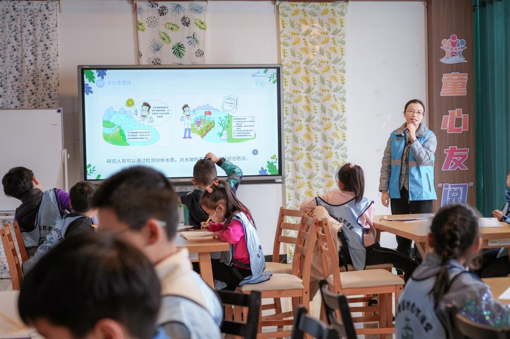 郁红艳老师从世界水日、水资源现状、水的重要性、水质检测和如何节约用水五个方面为小学生们进行了保护水资源的科普讲解,让同学们深刻认识到我国水资源短缺的现状及水污染的危害,从而认识到保护水资源的重要性。此外,郁老师详细讲解了地表水采集与检测的小实验,从方法原理、仪器步骤到数据记录都让同学们更好的了解到了水质检测工作。科普过程中同学们积极参与互动,对知识充满了热情。