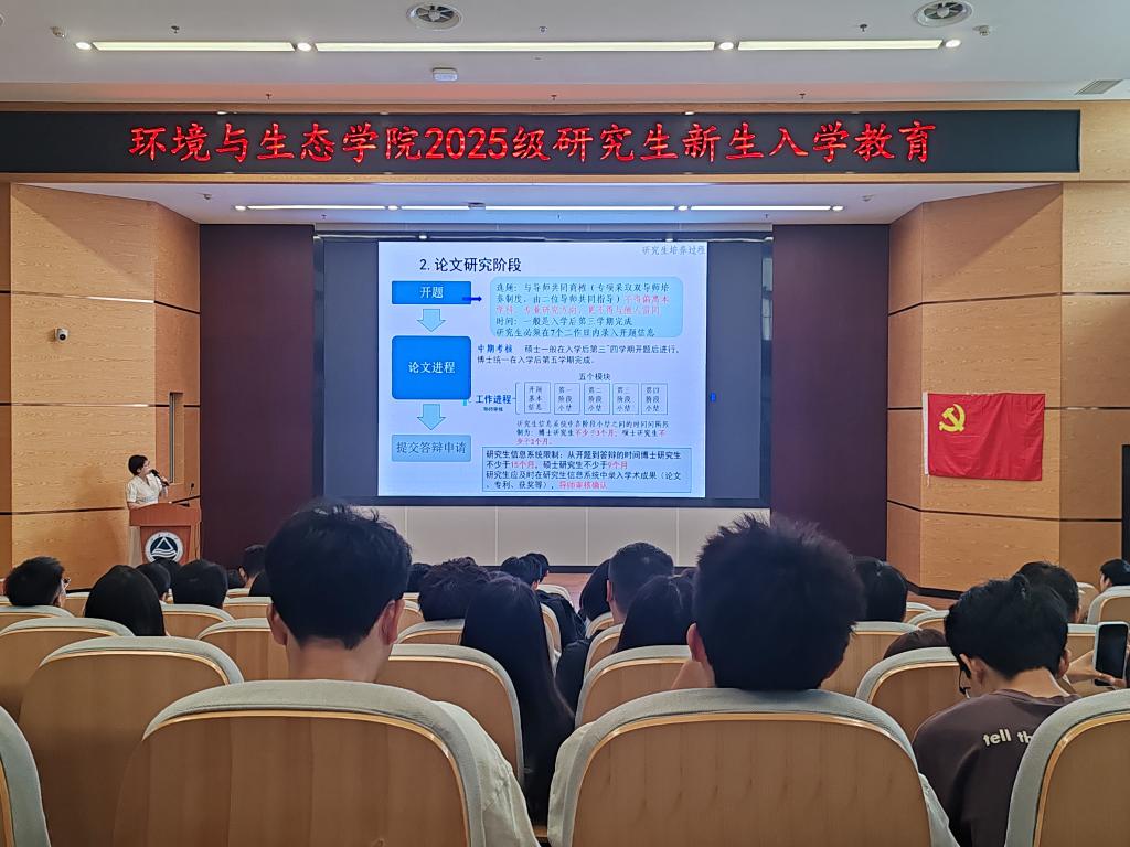 2025 年 9 月 26 日下午,2138CC太阳集团在东氿校区组织2025 级研究生新生在钱盘生楼报告厅开展研究生系列新生入学教育,其中研究生教学秘书王晓雯老师围绕培养方案、课程设置、专利申请及学术论文写作等方面,为2025级研究生新生带来了一场“干货满满”的入学导航。