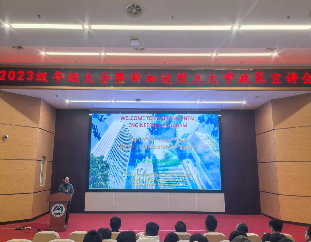 12月23日下午,2138CC太阳集团新加坡国立大学“3+1+1”项目宣讲会暨2023级年级大会在东氿校区钱盘生楼A101报告厅顺利召开。新加坡工程院院士、新加坡国立大学荣誉教授王世龙,新加坡国立大学环境工程系主任胡江泳,新加坡国立大学苏州研究院徐栋、杨轩,学院辅导员李猛及2023级全体本科生齐聚现场,会议由学院副院长王新华主持。