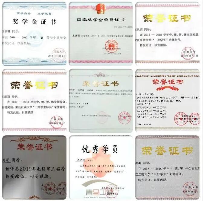 连续三年专业第一,54门课程满绩,王洪羽的本科生涯,所获得的奖项多得不计其数,仅个人奖项获得的奖状就铺满了一个会议桌。目前,王洪羽已经推免至浙江大学继续深造。从迷茫到坚定,从平凡到卓越,王洪羽用自律与明确而坚定的目标,证明了实现梦想的办法。