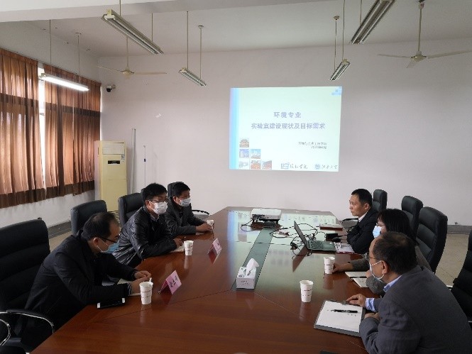 刘仁处长介绍了学校中央专项设备采购项目,一流本科专业实验室建设,物资信息化处理布局等工作情况。副院长邹华以“环土学院实验室建设现状及目标需求”为题介绍了环土学院实验室建设方面的情况。王震宇院长、李艳书记分别剖析了学院实验室建设和发展现阶段的突出问题以及环境学科发展的基础条件平台建设的需求。双方还对环境专业实验室建设如何服务有关专业甚至全校学生、环境工程一流专业建设中实验室方面的需求、宜兴校区与学院建设的衔接、实验室安全建设等诸多方面内容进行了激烈的讨论和深入的探讨。