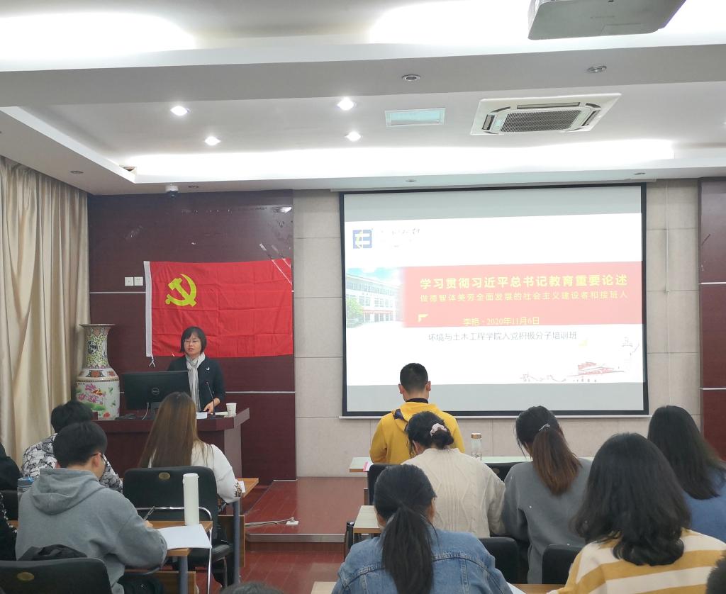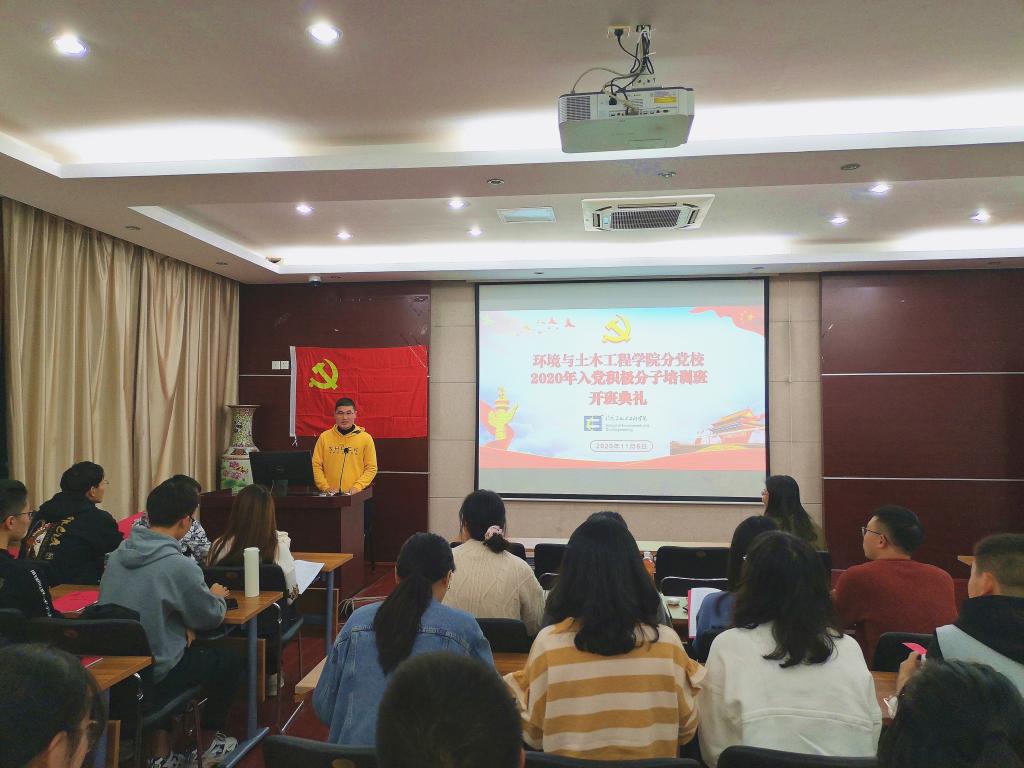 11月6日下午,环境与土木工程学院分党校举行2020年入党积极分子培训班开班典礼。院党委副书记兼副院长胡娟出席开班式,培训班班主任、辅导员何涛主持开班式,全体学员参加活动。