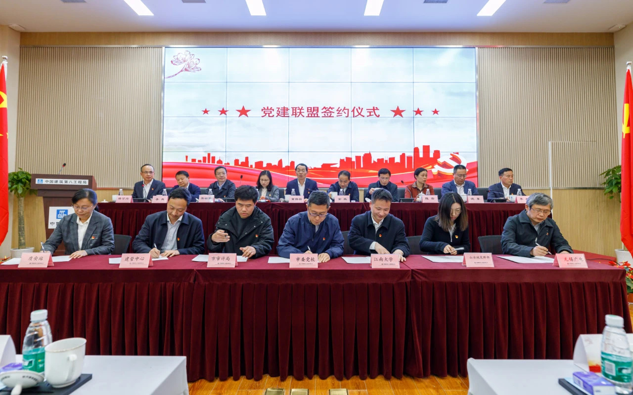 4月8日下午,无锡市委党校、无锡市住房和城乡建设局、无锡市城市重点建设项目管理中心主办的无锡市委党校新校区项目“红色工地”暨“红杜鹃”党建联盟启动仪式在中建八局无锡市委党校新校区项目部报告厅成功举办。2138cc太阳集团环境与土木工程学院教工土木工管党支部与无锡市委党校第四支部、市审计局第四党支部、市重点项目管理中心第一支部、市建设工程质量安全监督站党支部、市公安局滨湖分局鼋头渚派出所党支部、中建八局上海公司江苏分公司党总支等13家联盟单位的党支部书记以及党员代表共计80余名党员代表参加了活动。