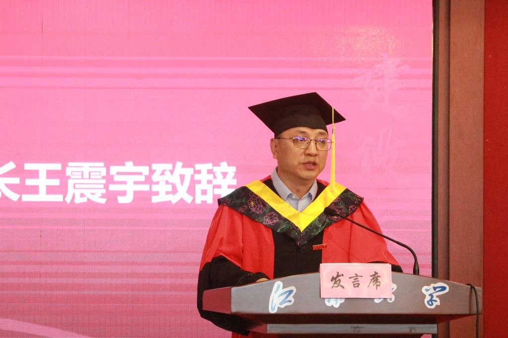 王震宇在讲话中向全体毕业生致以最热烈的祝贺,向关爱、教导同学们成长成才的父母、老师们致以最崇高的敬意。他对即将踏上人生新旅程的毕业生们寄予期望,希望同学们不忘来时的初心使命,点燃新征程的奋斗激情,奏响新时代的青春强音。他期待环土英才在将来取得更大的进步,在新时代浪潮中直挂云帆,乘风破浪!