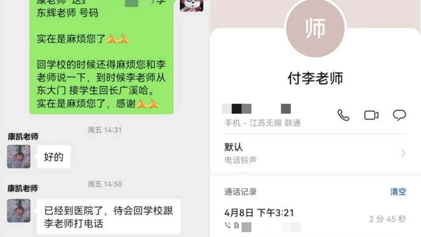 张云老师接送学生就医