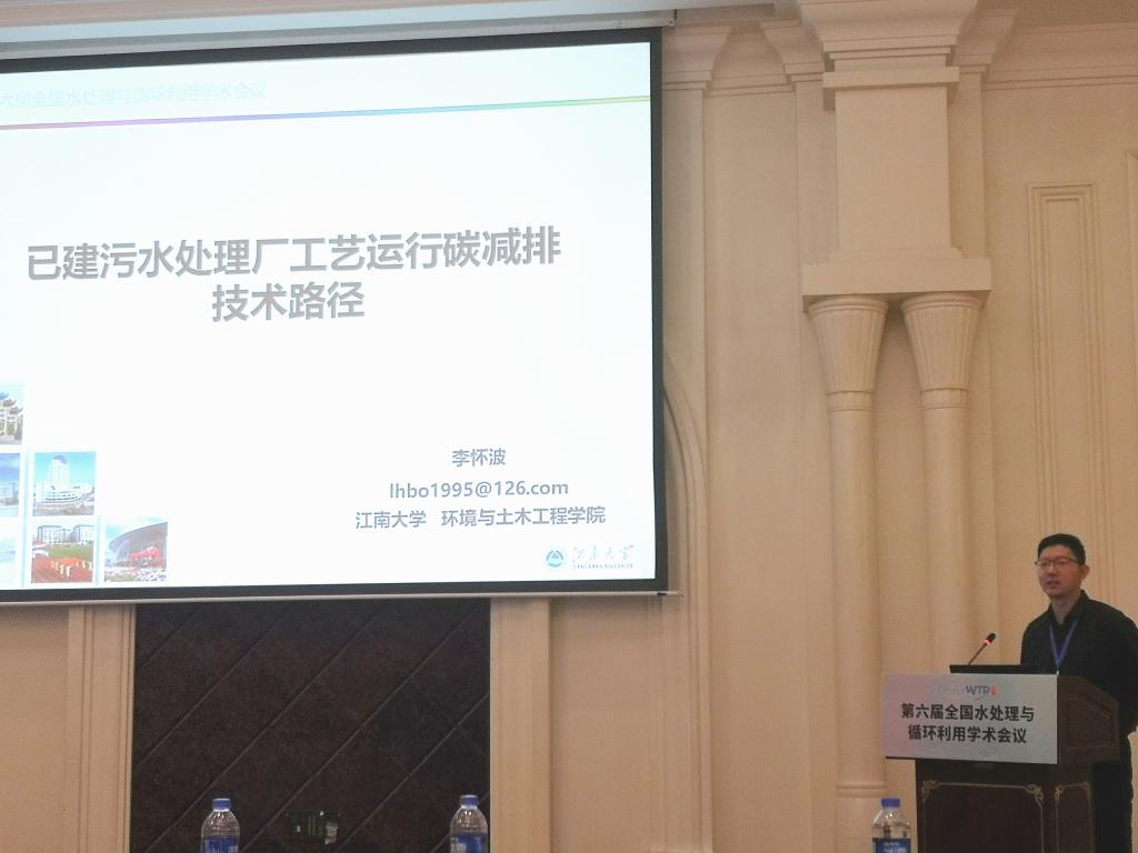 我院博士生李怀波同学参加本届大会并于“工艺、设备与智慧运行”分会场作了题为《已建污水处理厂工艺运行碳减排技术路径》的学术报告。报告紧贴“碳达峰碳中和”目标大背景,从太湖流域污水处理厂的碳排放现状入手,论述了现阶段污水处理厂碳减排的必要性,并结合实际案例剖析了通过优化工艺运行实现污水处理厂低碳运行的可行性,提出“污水处理厂的低碳优化路径有章可循”;此外报告凝练李激教授课题组对全国100余座污水处理厂全流程评估工作的经验,指出了当下污水处理厂设计和运行方面存在的误区,并给出针对性的优化建议。