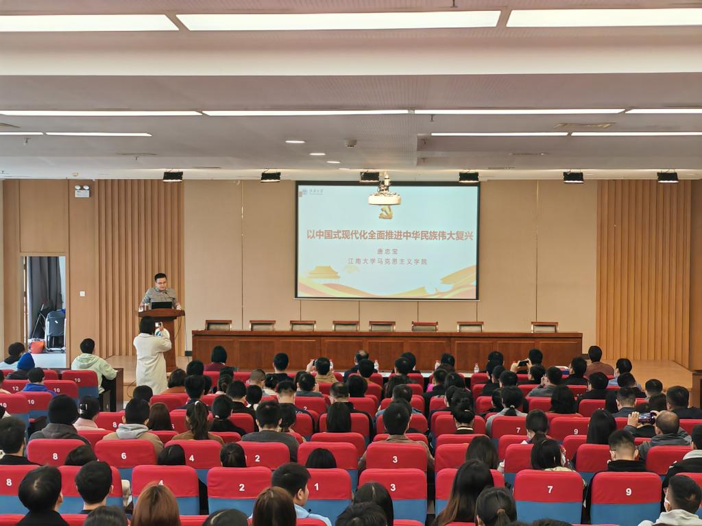 11月16日,环境与土木工程学院召开学习宣传贯彻党的二十大精神报告会,马克思主义学院唐忠宝教授作宣讲报告。报告会采用线下线上相结合的形式,学院党委委员、蠡湖校区全体师生党员、入党积极分子培训班学员在现场参加会议,东氿校区党员和蠡湖校区本科生通过线上参加报告会,共400余人参会。学院党委书记李艳主持报告会。