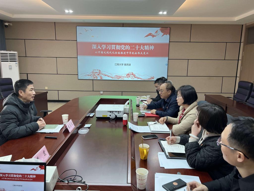 会后,校党委副书记戴月波同志为学院党委中心组讲授党的二十大精神专题党课。