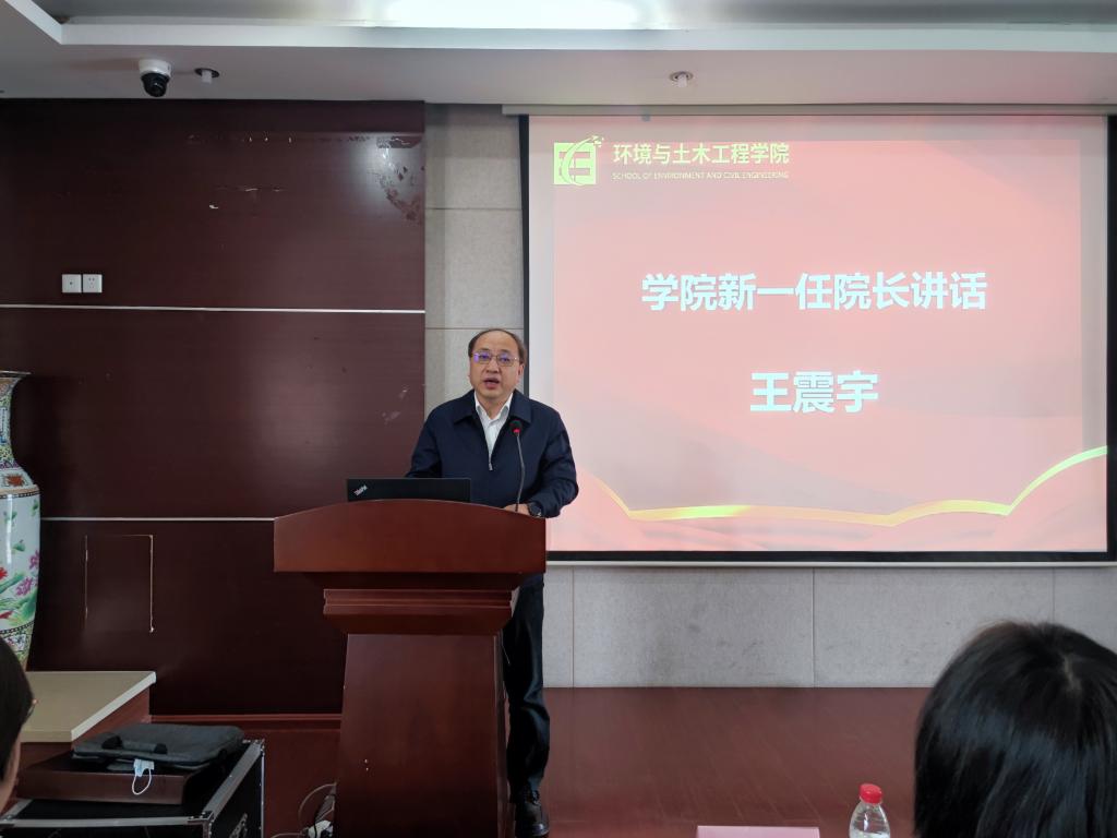 戴月波宣读了学校党委关于李艳同志、王震宇同志的职务任职决定,任命李艳同志为环土学院党委书记、王震宇同志为环土学院院长。戴月波在随后的讲话中指出,这次中层干部的换届调整,既是学校干部任期目标责任制的例行工作,也是优化班子结构、促进改革发展的一项重要举措。他对环土学院上一届党政班子在2020-2022年任期中取得的成绩表示高度肯定,对于全体教职工共同努力表示衷心感谢。对新一届领导班子提出了四点要求:一是要旗帜鲜明讲政治,强化党政同责、一岗双责意识。二是要敢于担当善作为,要抢抓发展机遇,前瞻思考、主动作为,努力开辟发展的新领域新赛道,不断塑造发展新动能新优势。三要团结协作聚合力,牢固树立“一盘棋”思想,围绕中心工作,密切配合、通力协作,形成上下齐心谋发展的良好格局。四要以身作则当表率,领导干部要身体力行、以身作则,充分发挥示范表率作用,凝聚干事合力。