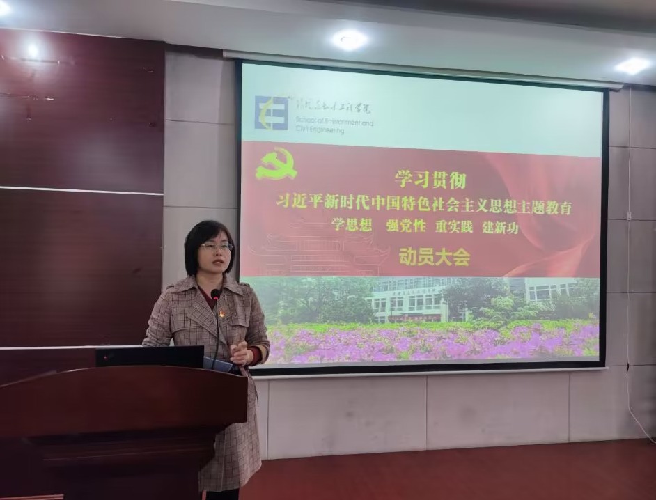 4月25日下午,环境与土木工程学院召开教职工大会,就深入开展学习贯彻习近平新时代中国特色社会主义思想主题教育进行动员部署。全体教职工参加,院党委书记李艳主持会议。