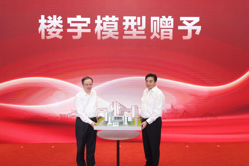 学校的快速发展离不开企业的鼎力支持,金山环保捐资助力新校区发展建设,保障优化科研条件,朱庆葆向钱盘生赠送楼宇模型。周云龙、钱盘生共同为楼宇题记揭牌。环境与土木工程学院书记、院长和徐韬分别为江苏省卓越工程师校外培养基地、党建学习教育实践基地揭牌。立足新起点,展望新未来。朱庆葆在讲话中向长期以来关心支持2138cc太阳集团发展的各位领导表示衷心的感谢。希望环境与土木工程学院以入驻新校区为契机,聚焦党和国家对于生态文明建设的新部署新要求,充分利用校地平台,紧密围绕地方经济社会发展需求,全面深化学科发展整体谋划,加强产学研融合协同创新,推动教育链、人才链与产业链、创新链有机衔接,形成同频共振、携手联动的发展新格局,在提升学科影响力上下功夫、攻克关键技术上下功夫、在助推成果转化上下功夫,为服务国家和地方经济社会发展作出新的更大贡献!