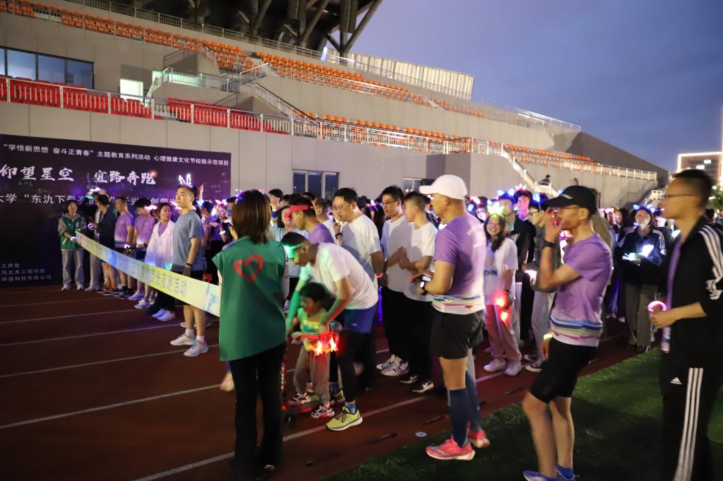 “东氿下最亮的星”荧光夜跑吸引了环境与土木工程学院、设计学院、纺织科学与工程学院、马克思主义学院、人文学院等六个学院近250名学生及20多位校外企业家和外籍友人的参与。