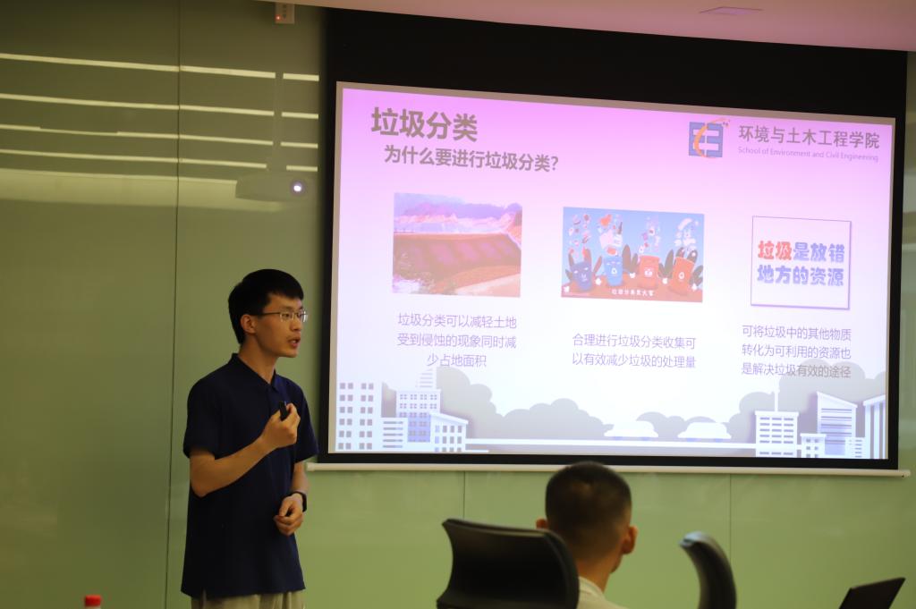生态环保青年生逢其时、重任在肩,研究生支部党员严普同志为大家作《双碳科普,守护绿水青山》主题宣讲,讲解双碳知识和垃圾分类,讲解过程中与同学们积极互动,同学们兴致盎然,踊跃回答问题,活动氛围热烈。通过此次科普宣讲教育活动,使同学们了解了环保的重要性,同时也培养了同学们的环保意识和责任意识。