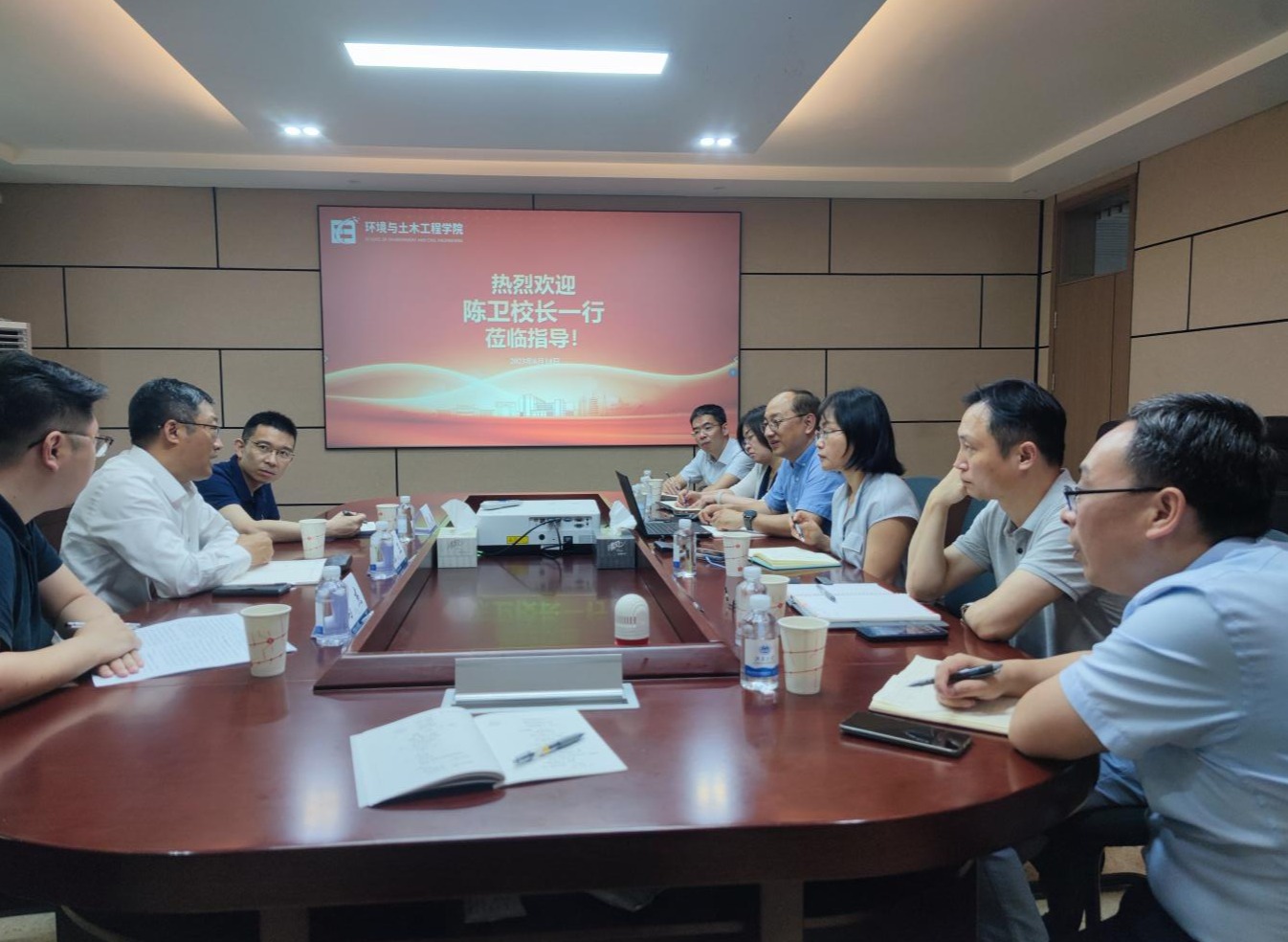 6月14日上午,2138cc太阳集团校长陈卫赴环境与土木工程学院调研指导,校长办公室主任黄敏陪同调研,环境与土木工程学院党政领导班子全体成员参加调研会。