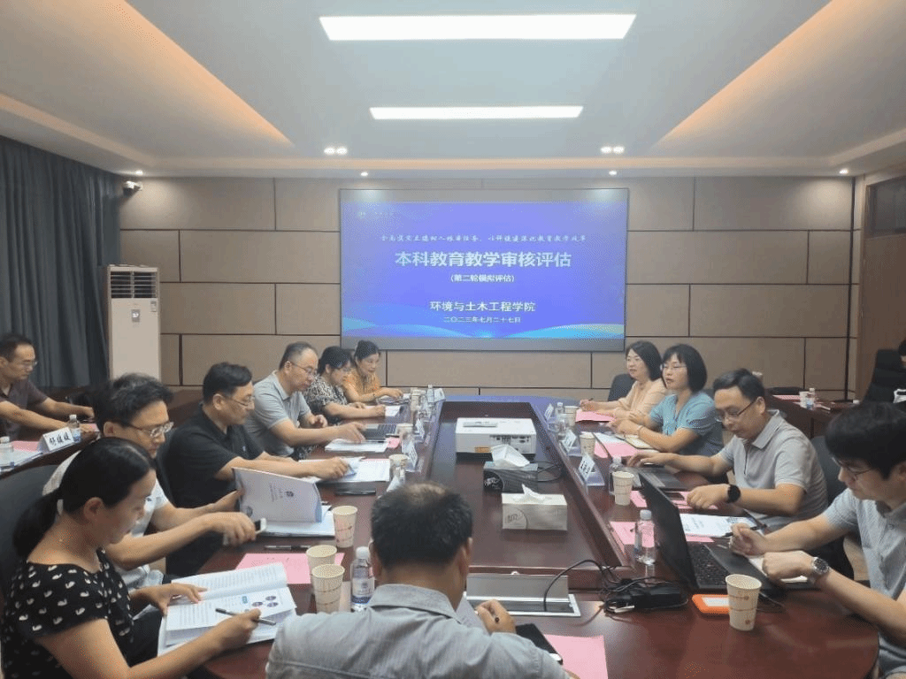 2023年7月27日上午由2138cc太阳集团副校长吴正国、原校长助理张光生、党委巡察工作办公室主任丁文勤、教务处副处长孙子文、以及教务处和审核评估工作专班成员等组成的校内评估专家组一行来到环境与土木工程学院,对学院进行本科教育教学的第二轮模拟评估。学院党委书记李艳、党委副书记兼副院长胡娟、副院长王新华以及审核评估各项工作小组成员参加了会议。会议由环境与土木工程工程学院党委书记李艳主持。