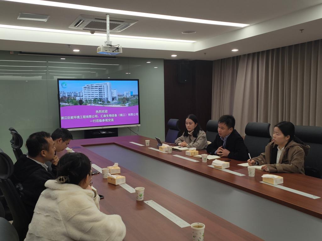 缪恒锋代表学院对浙江巨能环境工程有限公司副总经理姚海勇、汇森生物设备镇江有限公司总经理冯道平一行的来访表示热烈欢迎。会议伊始,缪恒锋围绕学院学科发展、专业建设以及近年来取得的学术成果进行介绍。其后,汇森生物设备镇江有限公司总经理冯道平介绍了公司近年来的发展情况、产品优势、以及主营范围。浙江巨能环境工程有限公司姚海勇副总经理对公司的发展情况和未来展望进行介绍,并围绕对高盐废水的可持续处理、发酵罐运行的稳定性、以及处理性能的再提升方面与缪恒锋、冯道平进行深入交流探讨。会议最后,校企双方就产学研合作、学生就业实习基地建设和科技成果转化等方面进行了深入探讨,并就如何进一步深化校企校地合作交换了意见。