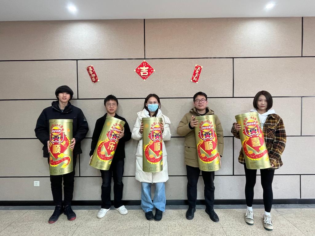 胡娟细致询问每位同学的留校原因,对同学们留校开展实验、备战学科竞赛、参加实习实践表示充分的肯定和鼓励,并关心大家留校期间的生活、学习情况,提醒大家一定要注意安全。李艳向全体同学致以新春的问候,她指出2023年是全面贯彻落实党的二十大精神的开局之年,是学院第八轮任期目标的开局之年,全院师生凝心聚力,奋力答好“教育强国,江南何为”的答卷,开创了学院发展的新局面。学院是同学们坚强的后盾,为同学们的成长和发展保驾护航,希望同学们站在崭新的起点上,合理规划、矢志奋斗,在2024年收获自己的梦想,一起携手向未来。留校学生也结合自己的科研、学习和生活情况与老师们进行交流。最后,老师们向同学们赠送了新春大礼包,祝福同学们龙行龘龘,前程朤朤。