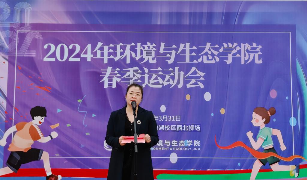 早上8:30,本次运动会正式开始,随着庄严肃穆的音乐,国旗护卫队迈着整齐有力的步伐入场,观众起立致敬。院党委副书记、副院长胡娟为本次运动会致开幕辞,她强调要高度重视并充分发挥体育在促进人全面发展中的重要作用,并总结了环境师生再过去一年取得的丰硕成绩,展现了环境人顽强拼搏的精神、追求卓越的风采。最后胡娟书记希望各位老师和同学要在学习与工作之余积极地参加体育锻炼,在全院形成朝气勃发的体育氛围。随后院艺术团的同学们带来暖场舞蹈《TikTok》,用舞蹈将开幕式的氛围烘托至高潮。院运会开始在即,由运动员代表高源琪示范引领热身操,使运动员们充分热身,从而使运动的风险降至最低。