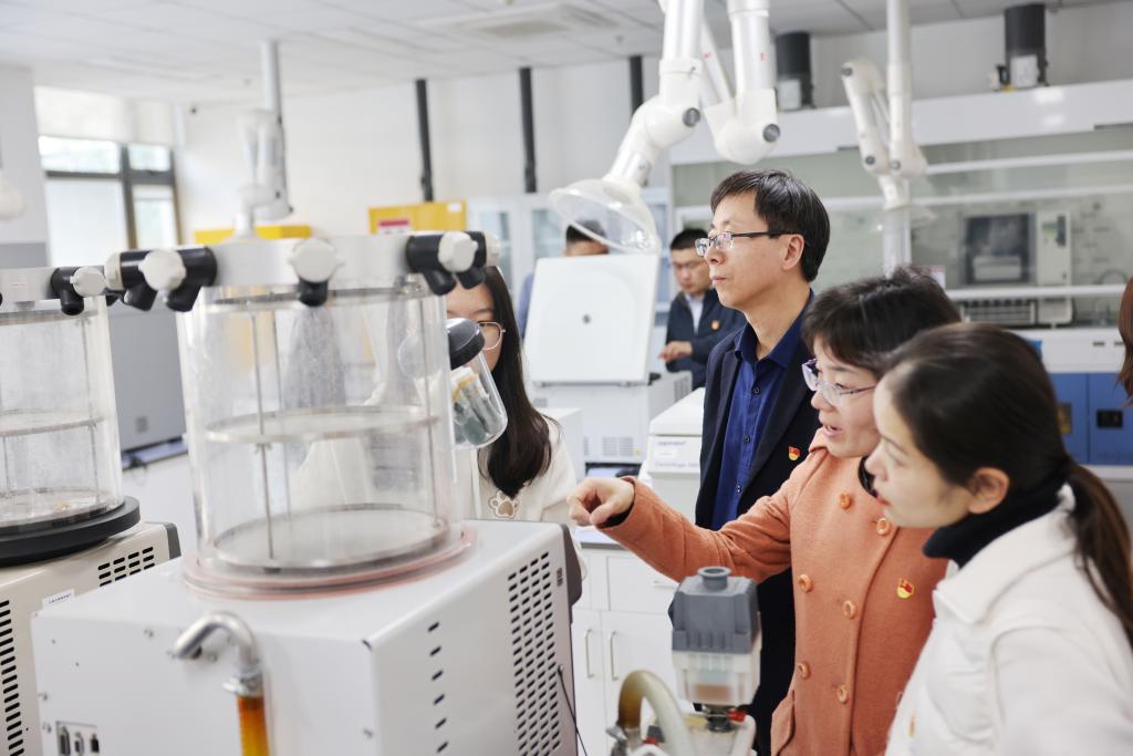 随后双方围绕工程教育、生态科技教育等双高合作发展方向进行了交流。通过围绕“组织建设互促、高中高校协作共赢”将党建工作和普通高中生态科技教育实施相结合,建立党建合作机制,加强党组织建设,丰富合作内涵,促进发展共赢。会后郁红艳、钱凯老师带领老师们参观了实验室、大仪平台和花房。