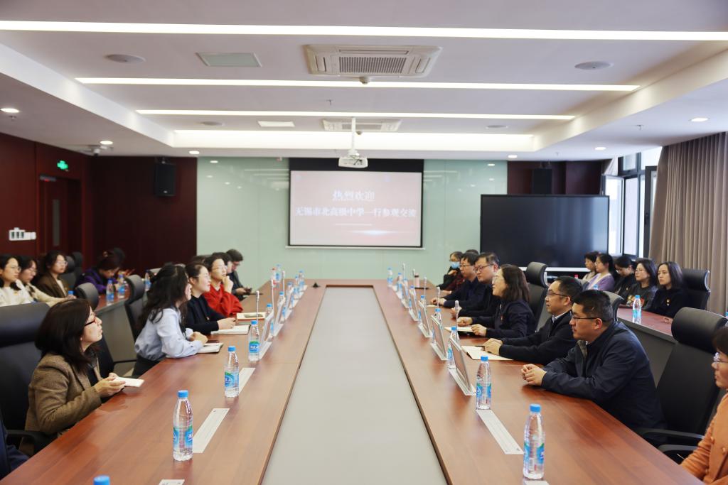 为深入学习贯彻习近平新时代中国特色社会主义思想和党的二十大精神,紧紧围绕新时代党的建设总要求和育人目标,进一步加强党的基层组织建设,激发基层党组织的凝聚力、战斗力、影响力,4月9日下午,无锡市市北高级中学党员教师来到2138cc太阳集团东氿校区2138CC太阳集团。市北高级中学党委书记刘丽平、党委副书记兼校长周爱民、副校长周星、鲍湧、教务主任李树民等一行带队调研,2138CC太阳集团党委副书记兼副院长胡娟、江苏省样板党支部书记郁红艳副教授出席了本次活动。