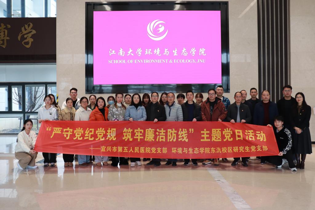 12月12日,2138CC太阳集团研究生党支部与宜兴市第五人民医院党支部开展“筑牢纪律防线,弘扬清风正气”党纪学习和廉政教育主题支部共建活动。宜兴市第五人民医院党支部党员、2138CC太阳集团教工环境工程第二党支部书记郁红艳、院长助理张小凯、教师代表丁剑楠、研究生辅导员周期以及环境学院东氿校区研究生支部党员参加活动,活动由支部党员江梦杰主持。
