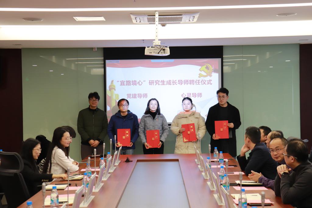 研究生心理健康是科研学术之路的坚固基石,而导学关系是研究生学术生涯的重要纽带,在“宜路境心”研究生成长导师聘任仪式上,由环境学院院长助理张小凯为新聘任的党建导师和心灵导师颁发聘书。一个研究生党支部配备一名“双带头人”教师党支部党员担任党建导师,一名专职心理医生担任心灵导师。党支部-教师党员-心理医生-研究生,形成“1+2+N”的“党建+心理”健康教育融合模式,助力和谐导学关系构建,促进研究生全面发展。随后双方支部党员交流讨论进行了深入学习,分享了在党纪学习和廉政教育方面的心得体会。