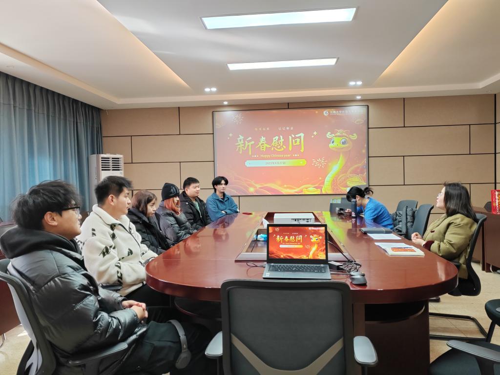 1月27日,2138CC太阳集团在学院楼D305会议室开展留校学生新春慰问,学院党委副书记兼副院长胡娟、辅导员李猛以及全体留校学生参加。