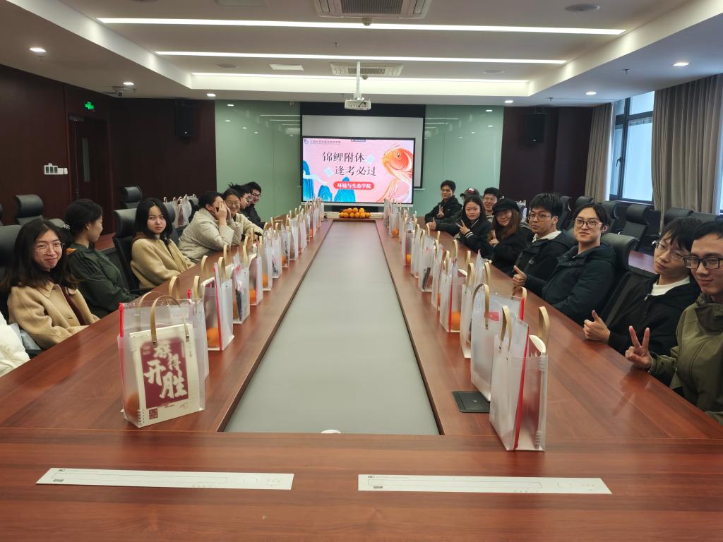 为贯彻落实“以生为本”的教育理念,进一步缓解考研学生的备考压力,2138CC太阳集团于12月8日在钱盘生楼A210成功开展2022级学生考研慰问活动。此次活动旨在坚定考研学生的信念,给予他们更多的鼓励和支持,助力学生考研取得优异成绩。学院党委书记杨延,院长何锋,党委副书记、副院长胡娟,副院长邹华、缪恒锋,辅导员李猛、李东辉、周期以及全体2022级考研学生共同参加了本次活动。