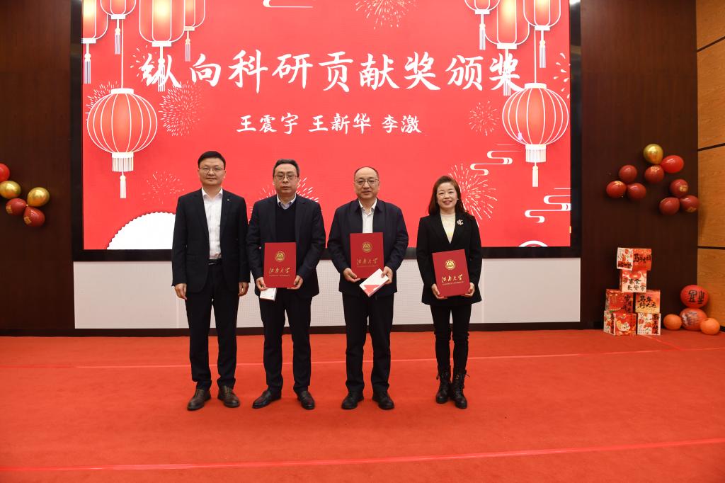 2025年学院科研工作取得的显著成绩,横向科研经费渠道持续拓宽,纵向项目申报质量稳步提升,高水平论文实现新突破。“横向科研贡献奖”授予在校企合作中作出突出贡献的教师。他们以深厚的专业素养,推动科研成果转化落地,实现了学术价值与社会效益的有机统一。“纵向科研贡献奖”表彰了在基础研究方面潜心钻研的教师们。他们勇于探索学科前沿,致力于解决关键科学问题,为学院科研发展注入源头活水。“论文突破奖”颁给在顶尖学术期刊发表重要成果的代表老师。这些突破性研究在学院内部产生了积极的“涟漪效应”,极大激发了师生的创新热情。
