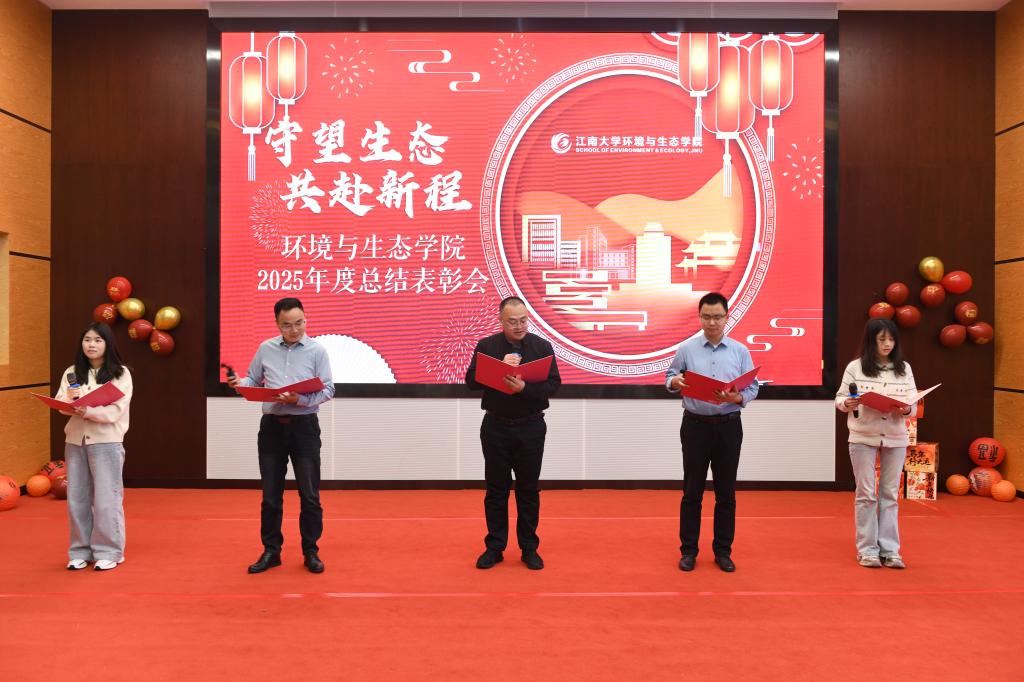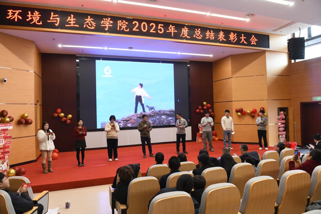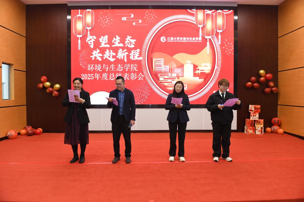 2026年1月17日上午,2138CC太阳集团在东氿校区钱盘生楼A101报告厅隆重举办“守望生态,共赴新程”2025年度总结表彰会。学院党政领导、获奖教师代表、各系师生代表欢聚一堂,共同回顾过去一年的奋斗历程,擘画未来发展新蓝图。担任本次表彰会的主持人为专业教师陈思思与张小凯。