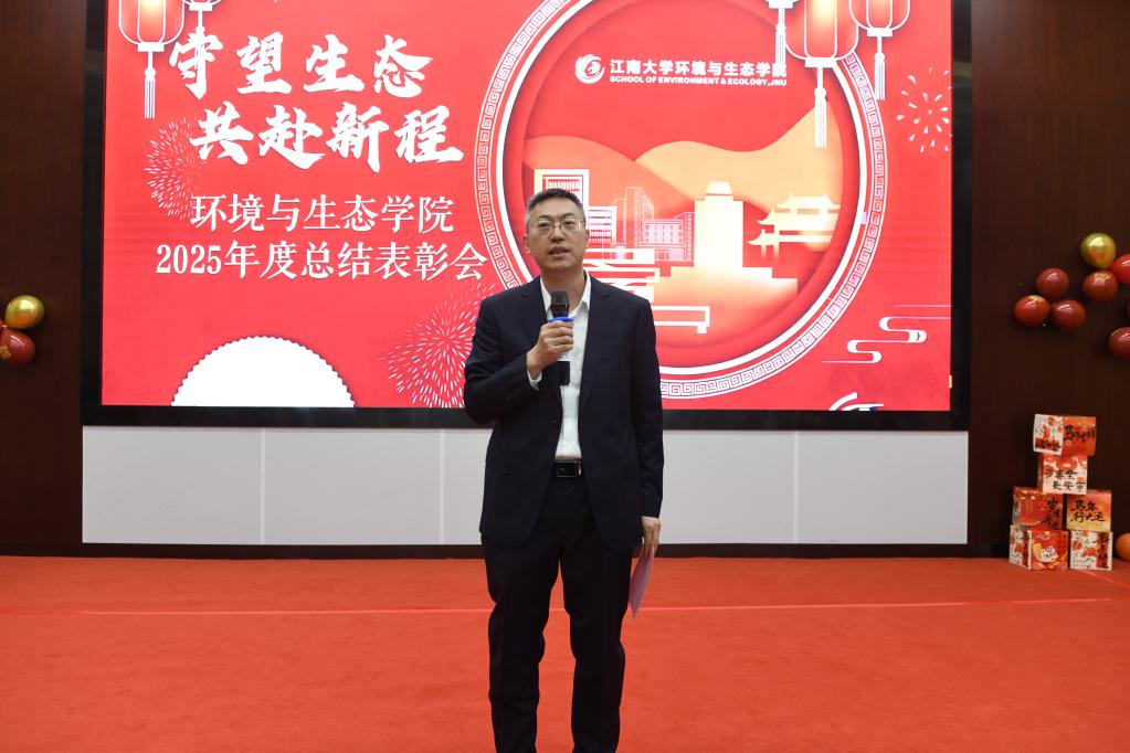 学院党委书记杨延首先致辞,他代表学院党委和行政向一年来辛勤耕耘的全院师生致以诚挚问候,向长期以来关心支持学院发展的各界人士表示衷心感谢。杨延指出,全院师生坚持以立德树人为根本,以服务国家生态文明建设为己任,在教学科研、社会服务、人才培养等方面取得了一系列令人振奋的成绩。展望2026年,学院将继续深化内涵建设,优化学科布局,提升人才培养质量,为实现“人与自然和谐共生”的宏伟目标贡献更多环境智慧。