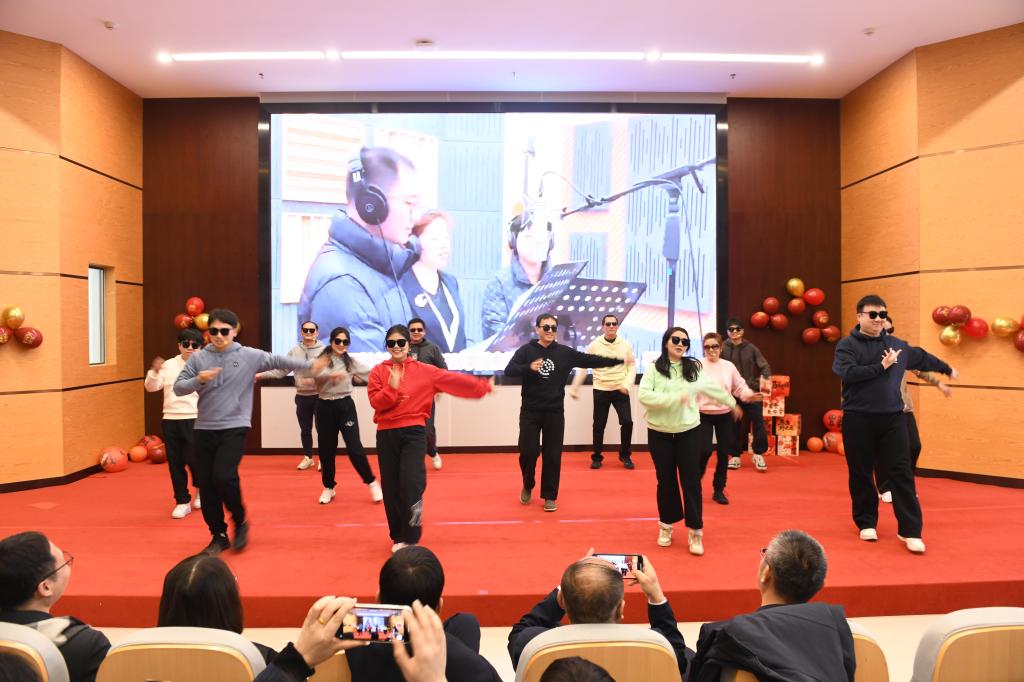 颁奖过程中,一系列精心编排的表演节目与互动抽奖环节巧妙穿插,不仅为大会增添了轻松愉悦的氛围,更成为展现学院人文风采与团队精神的重要窗口。各科研团队、教学系所及学生团体通过歌曲、舞蹈、朗诵等丰富多彩的形式,生动呈现了团队建设成果与昂扬向上的精神风貌。其中多个团队以“导学同乐”为主题,通过视频短片、现场互动、歌曲合唱等方式,温情展现了导师们在学术上悉心指导、在生活中关怀陪伴的感人细节。现场掌声与喝彩此起彼伏,洋溢着感动与鼓舞交织的热烈气氛。