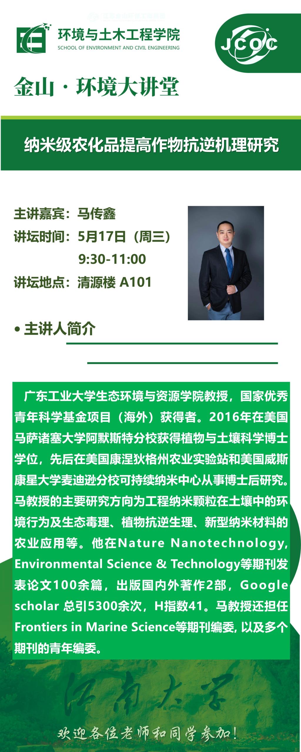 金山·环境大讲堂--马传鑫:纳米级农化品提高作物抗逆机理研究