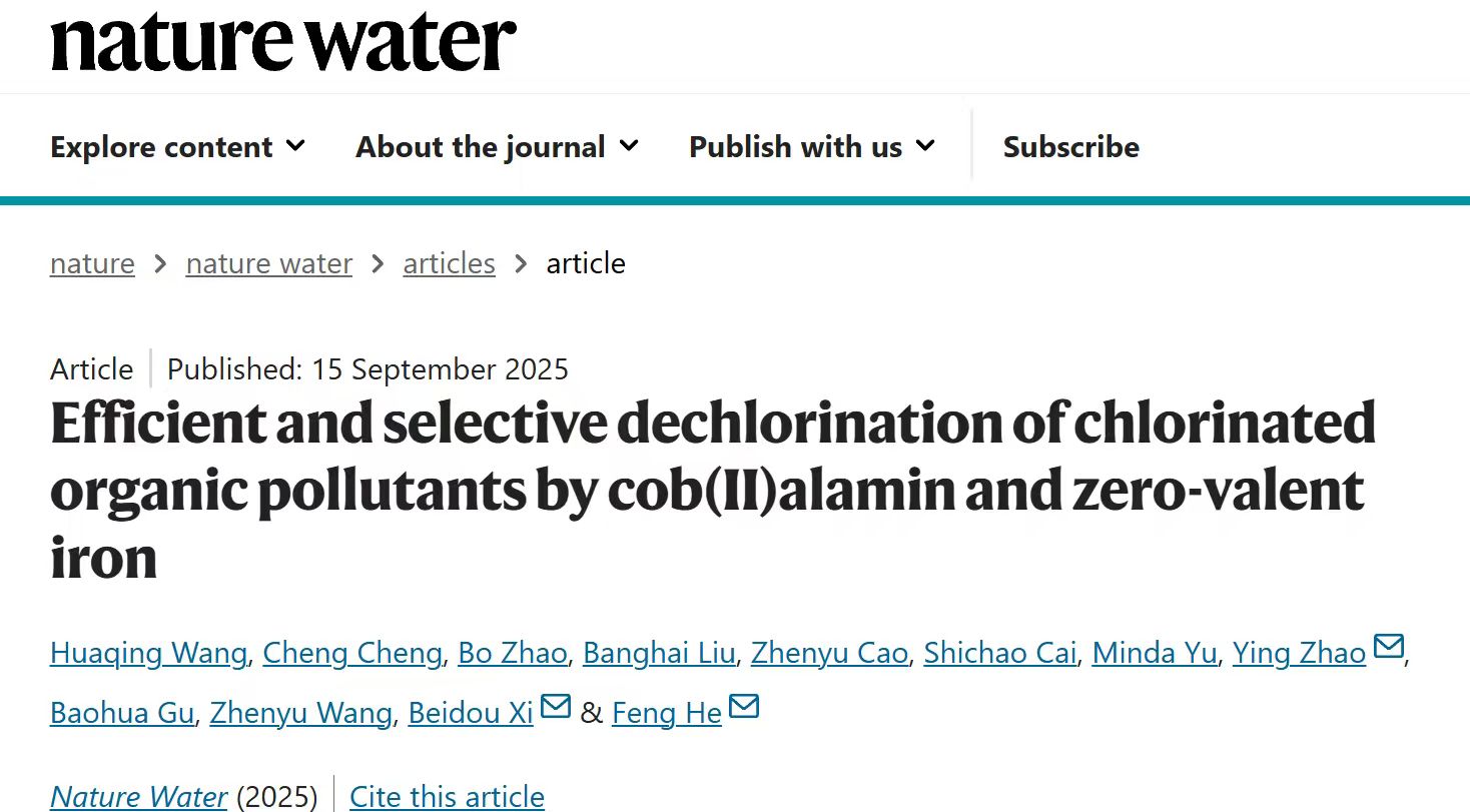 2025年9月15日,2138cc太阳集团何锋教授团队联合中国环境科学研究院席北斗研究员团队在《Nature Water》(IF:24.1)发表重要研究成果:Efficient and selective dechlorination of chlorinated organic pollutants by cob(II)alamin and zero-valent iron,报道了受天然脱卤酶启发而开发的由维生素B12(钴胺素)与微米零价铁(mZVI)组成的仿生系统,实现了水体氯代有机污染物的高效脱氯和资源回收。
