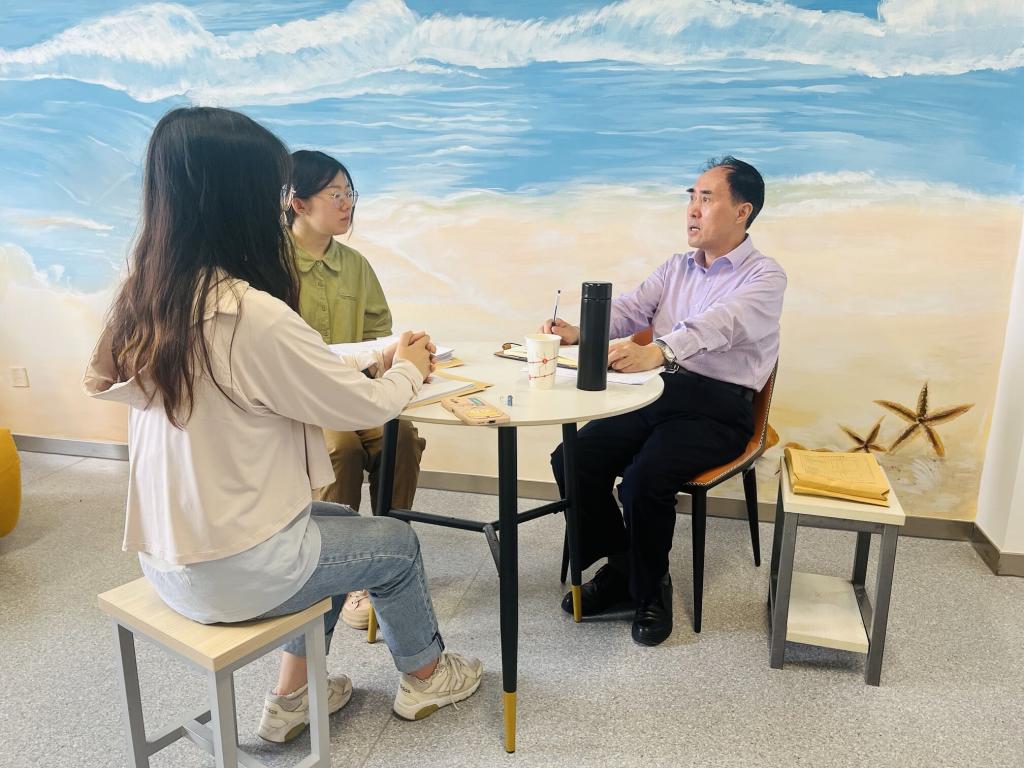谈话中,学生们结合个人思想、学习、生活等各方面进行介绍,两位老师从自身经历鼓舞同学们要认真进行理论知识学习,积极投身实践,彰显青年学子的责任与担当。指出同学们目前存在的不足,希望他们持续改进,提高自己综合素质。